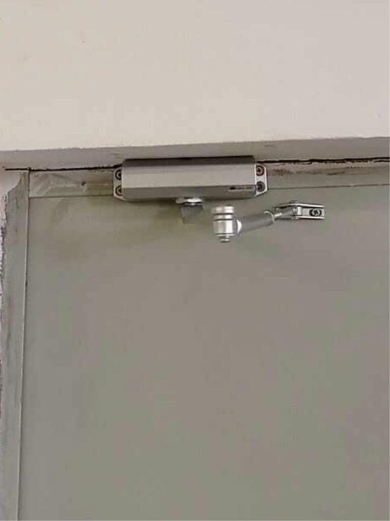 Préparation de l’emplacement : Placer la ventouse électromagnétique sur le haut du cadre de la porte et la contre-plaque sur la porte elle-même. Il faut s’assurer que tout est bien aligné pour que la force magnétique soit efficace